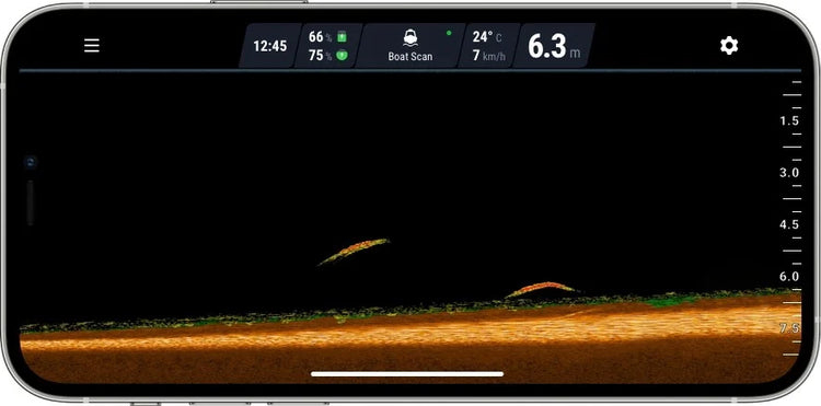 Дисплей эхолота покажет вам, насколько твёрд объект, используя цвет и яркость: чем ярче цвет, тем сильнее сигнал и, следовательно, тем твёрже объект. Это особенно важно при сканировании дна.