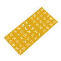 Каждая наклейка имеет размер 10,5 x 10,5 мм и состоит из прозрачной плёнки с нанесённым символом и клеевым слоем. Это позволяет легко закрепить наклейку на нужной кнопке.