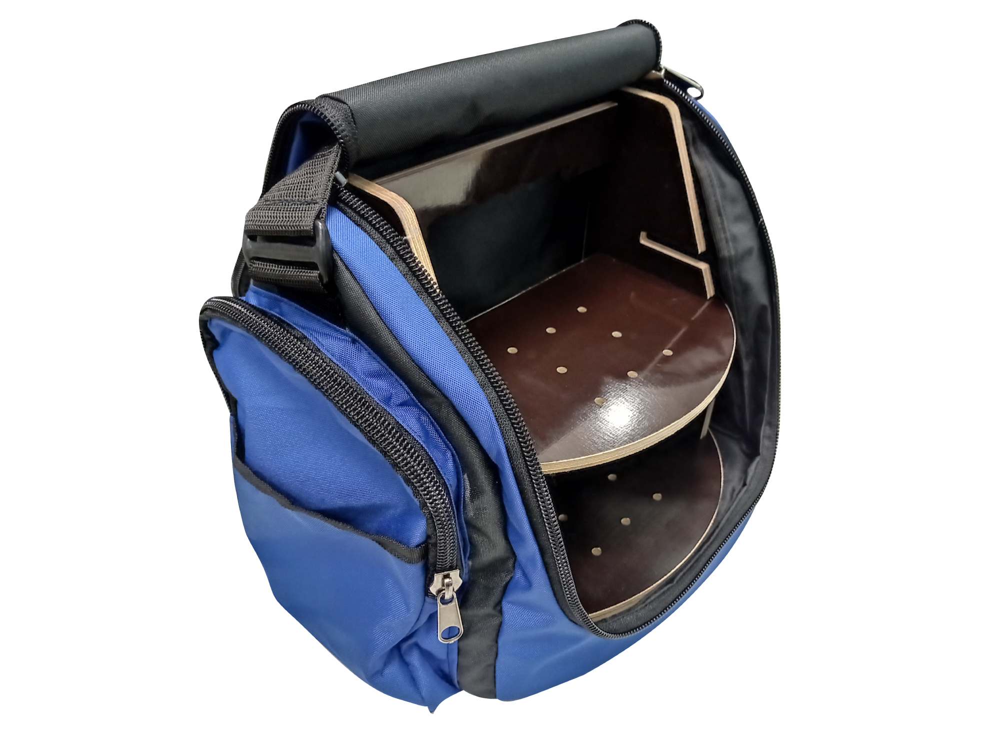 Сумка состоит из чехла и каркаса, выполненного из водостойкой фанеры. Каркас делит внутреннее пространство сумки на регулируемые по высоте верхнее и нижнее отделения. В нижнее отделение устанавливается аккумулятор емкостью 7-18 АЧ. В верхнее отделение ставится эхолот.